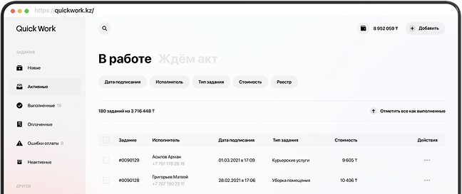 Получить бесплатную консультациюQuick Work решает задачи бизнеса при работе с внештатными сотрудниками