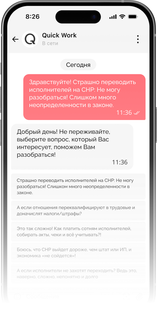 До 60–90 мин анализа данных клиентаАнализ ваших текущих схем выплат: какие исполнители (ИП/ФЛ/бывшие сотрудники), частота и суммы выплат, договора (ГПХ/трудовые), примеры актов/счетов.